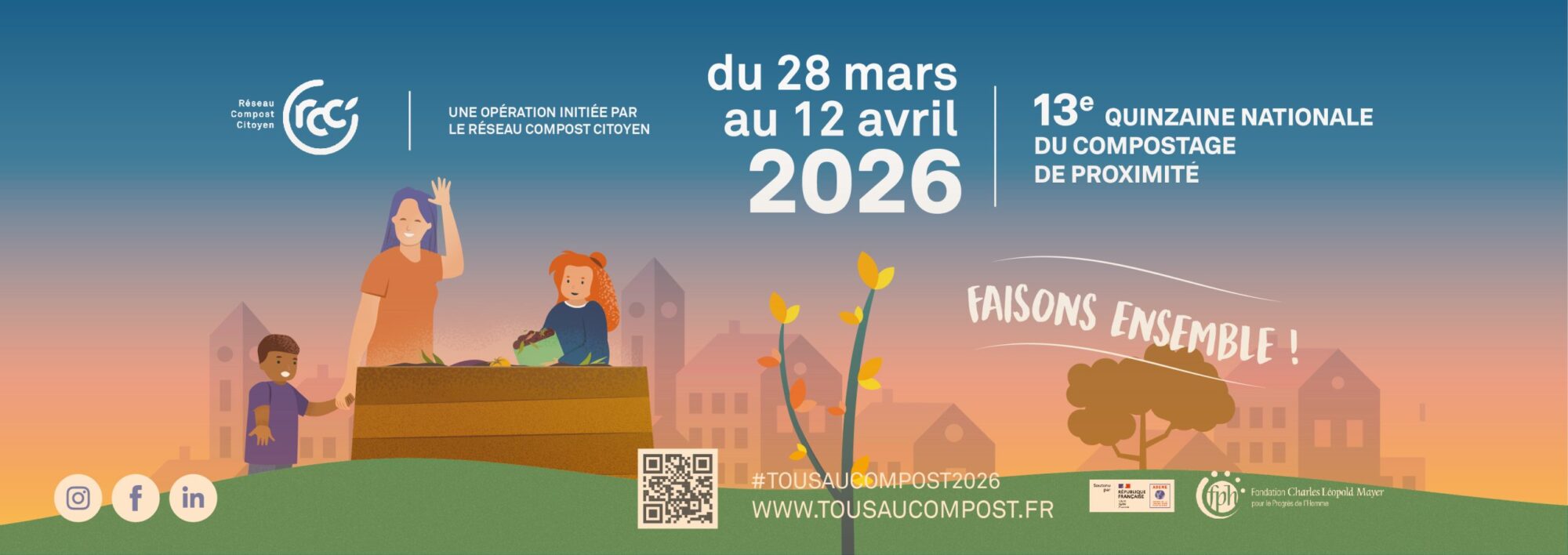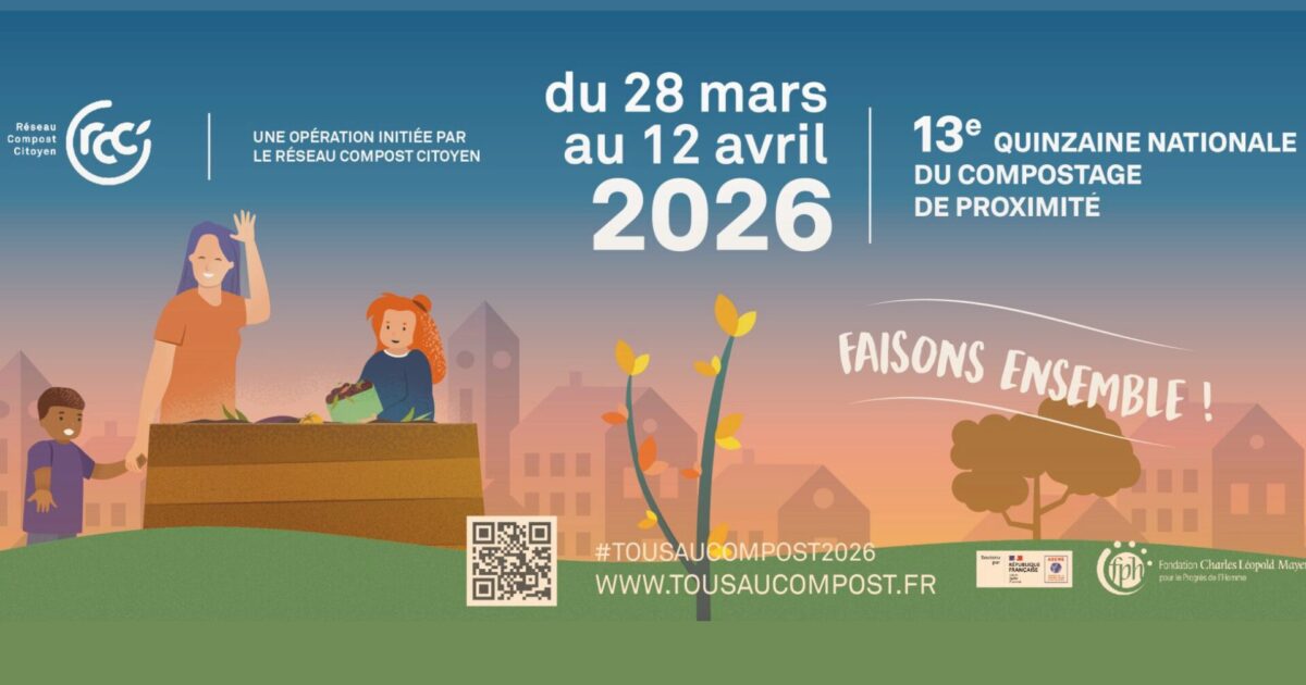 Du 28 mars au 12 avril 2026, le Réseau Compost Citoyen organise la 13ᵉ édition de Tous au Compost !, la quinzaine nationale dédiée au compostage de proximité. Plus de 2 000 événements auront lieu partout en France pour sensibiliser et mobiliser habitants, collectivités, entreprises, établissements scolaires et associations autour de la gestion des biodéchets.
